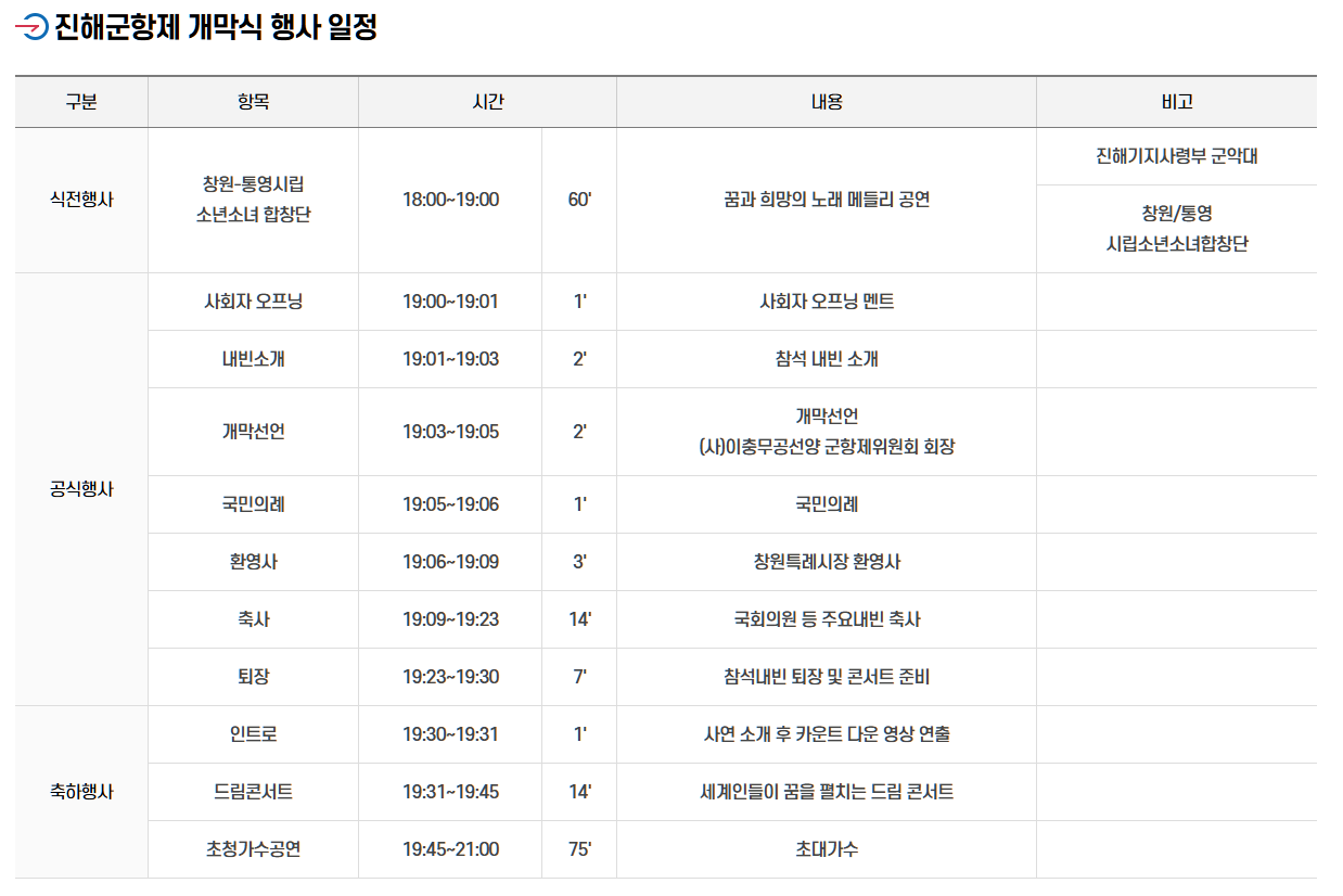 ⭕진해군항제 개막식 행사 일정